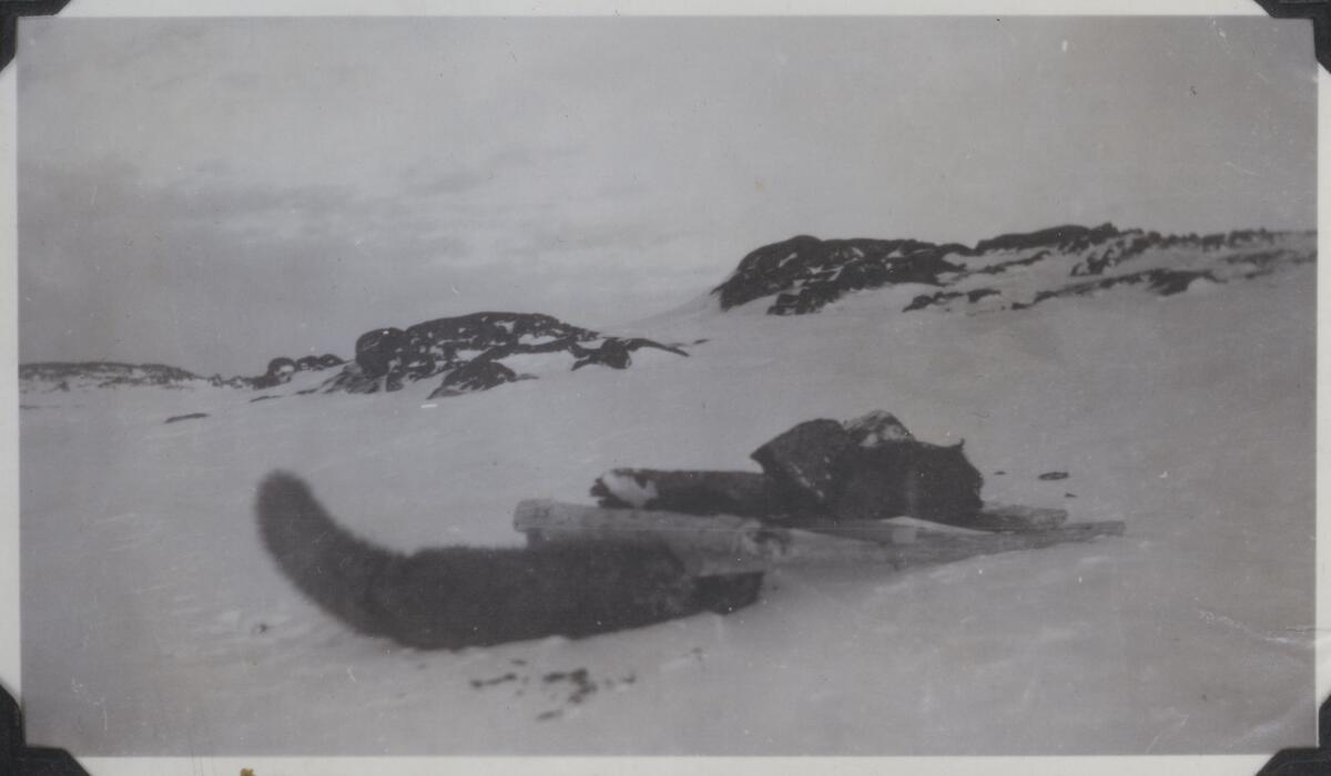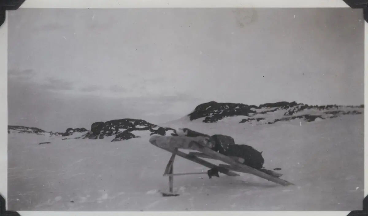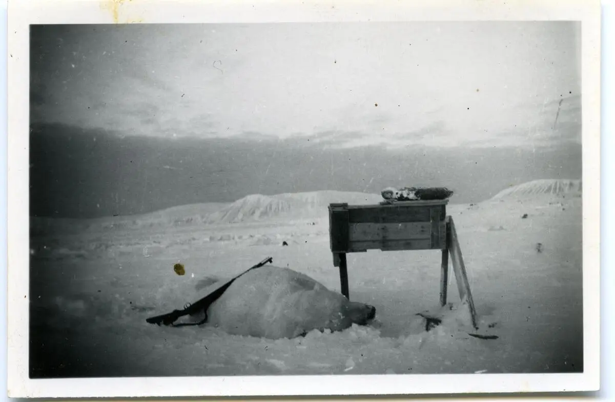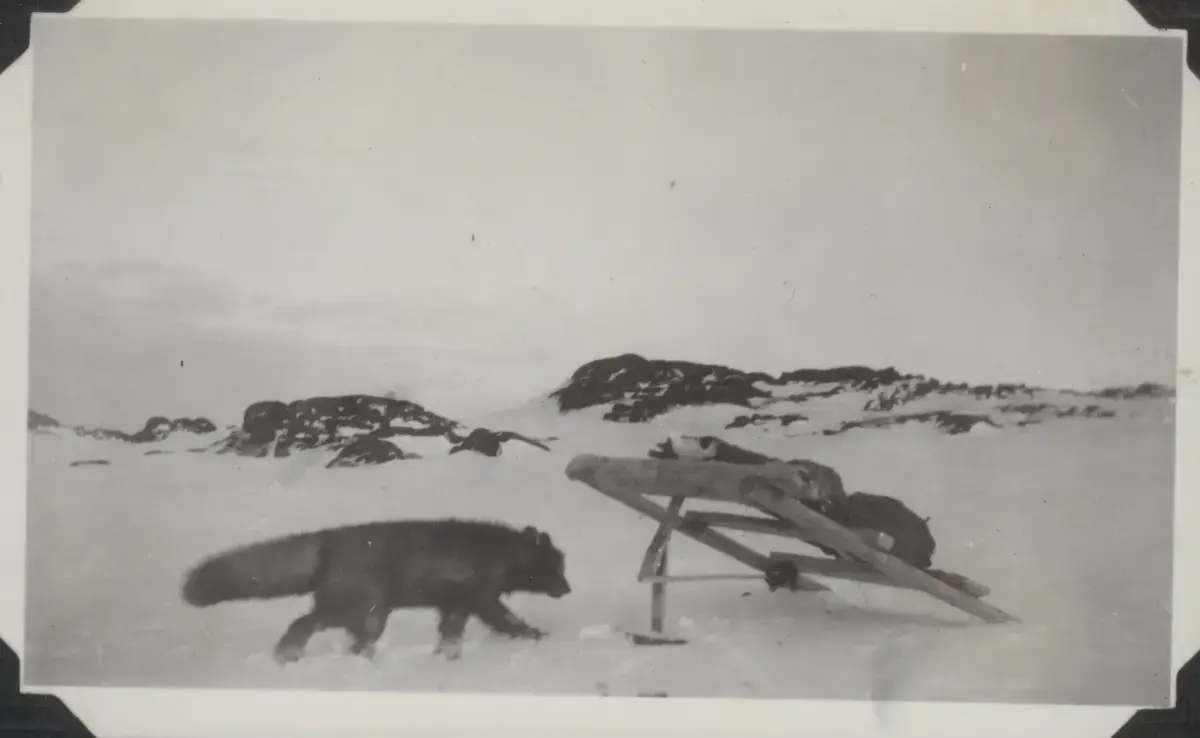 In fox habitats, trappers set up deadfall traps between the stations. Even though the entire hunting ground was used, most traps were placed in the lowlands. In late October, when the foxes’ fur was good and thick, the traps would be set. Every autumn, trappers gathered 30-40 kg of rock for each trap. If they were lucky, last year’s rocks would still lie in a neat heap near the trap. But curious polar bears often played with the traps, making repairs necessary.