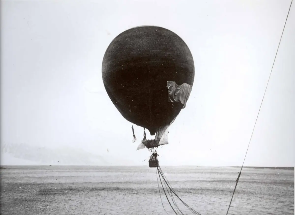 His first attempt in 1896 had to be abandoned because the wind was from the wrong direction. But the following year, 11 July 1897, Salomon August Andrée, Nils Strindberg, and Knut Frænkel set off for the North Pole in the hydrogen balloon ‘Örnen’. The balloon was equipped with long drag-ropes intended for steering. Immediately after the launch, some of the drag-ropes were lost and the crew were unable to steer the balloon. As they travelled farther north, rain and fog led to formation of ice on the balloon and after just 65 hours aloft, they were forced to land. This marked the beginning of a three-month, 400 kilometre long trek on foot across the ice. In early October they reached Kvitøya.