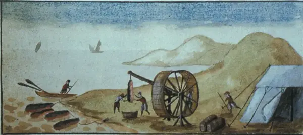 Treadmill for lifting strips of blubber. Source: Fotherby 1613