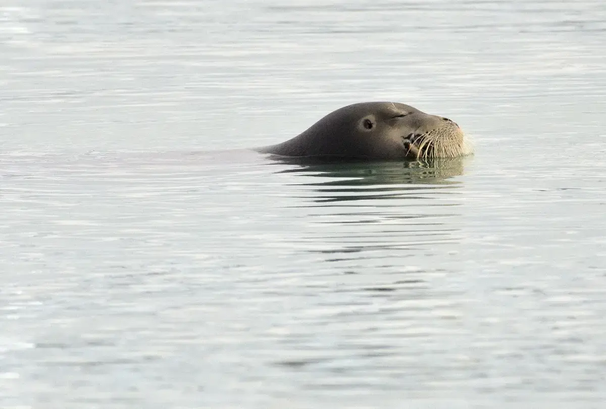 Tannhval. Den vanligste hvalarten på Svalbard. Som alle de permanente hvalartene i området mangler de ryggfinne. Hannene blir rundt 4,5 m lange og veier over 1500 kg. Hunnene er noe mindre. Kalvene er gråbrune når de blir født og etter hvert som de blir eldre blir de først mørkegrå, så lysere grå og noen år etter kjønnsmodning får de den karakteristiske hvite fargen. Tannhvalen er flokkdyr, som enten påtreffes som rene hannflokker, eller i blandingsflokker med hunner, ungdyr og kalver.